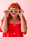 Add some 70s flair to any outfit with the fun and funky Donna Sunglasses in Pina Colada.
