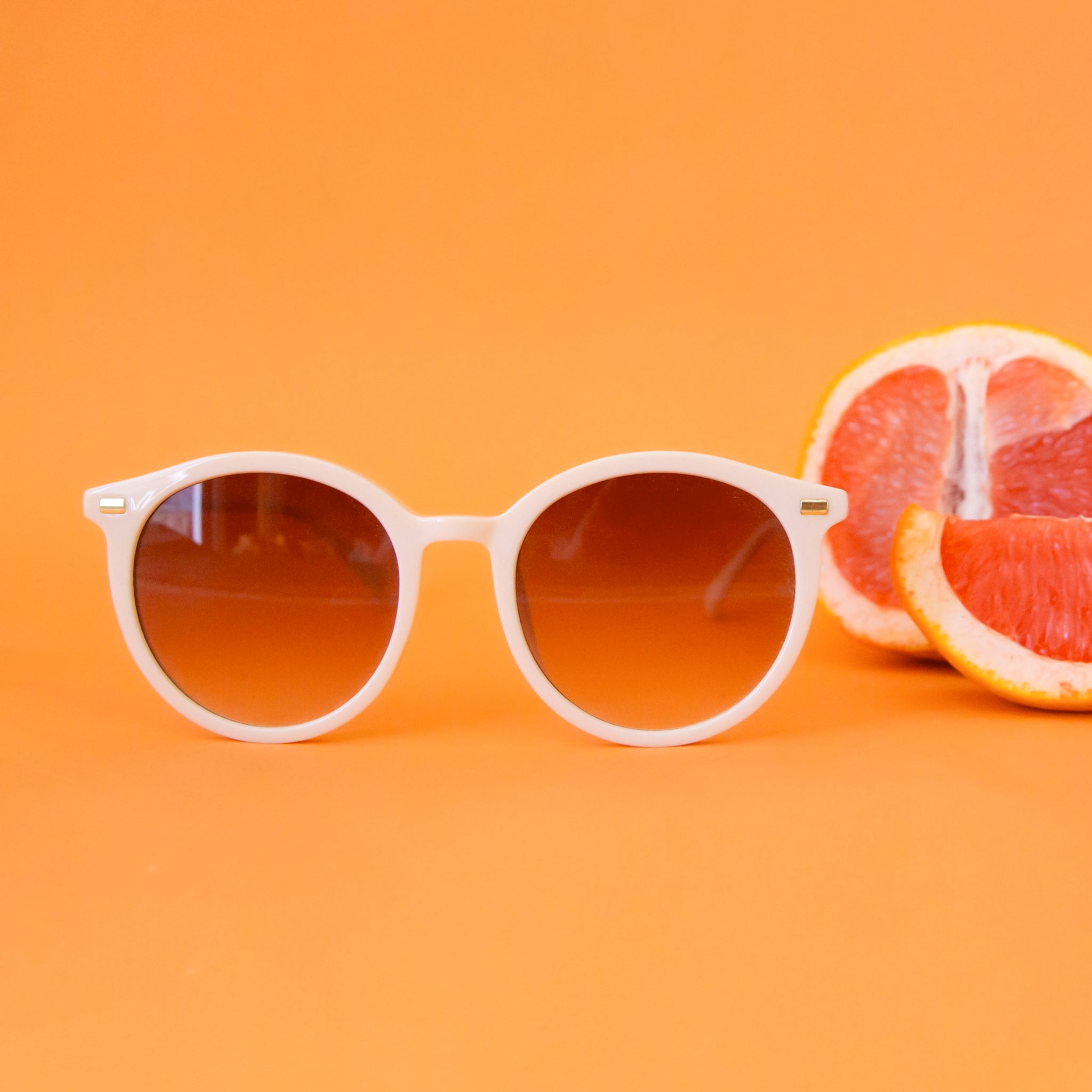 Shade your eyes from the sunshine and look cute doing it! The Sam Sunglasses have a rounded shape and feature a Ivory Frame to make the perfect accessory for any style.