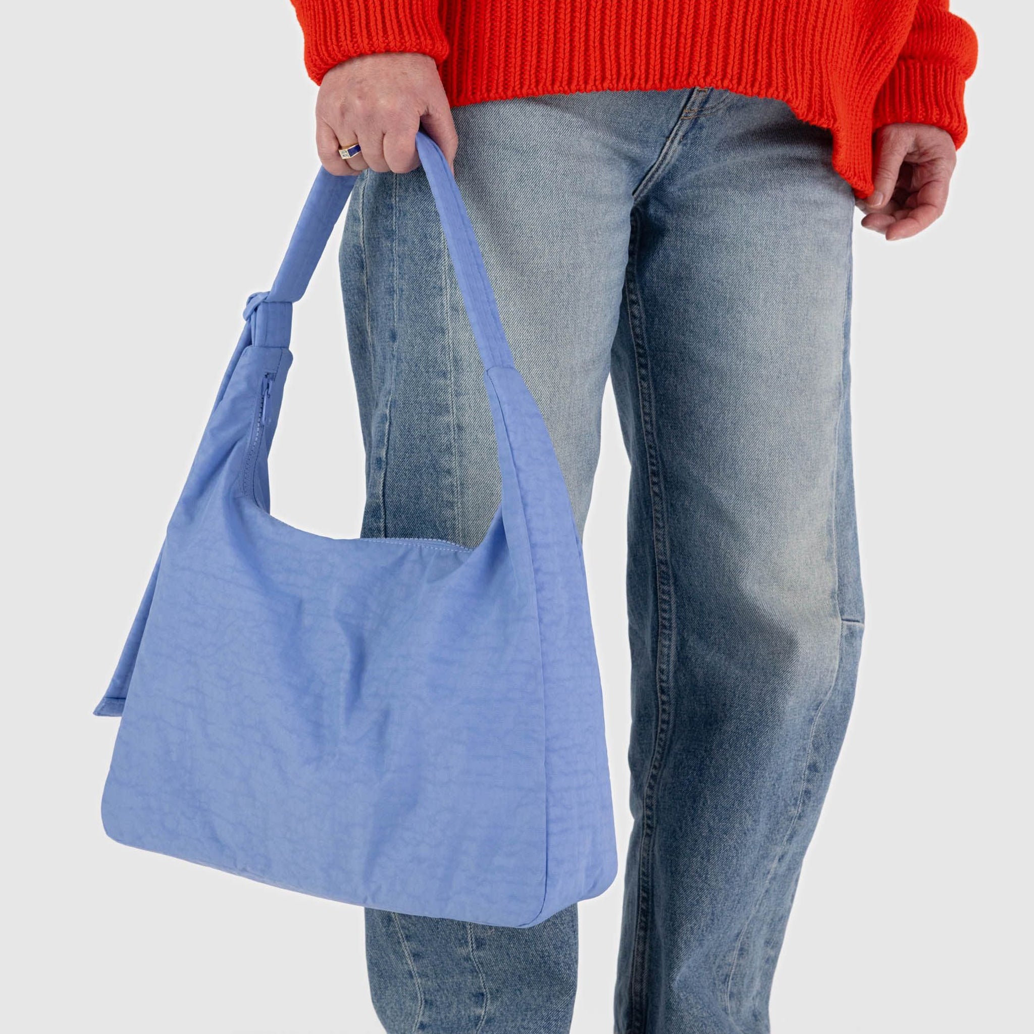 Baggu's new nylon shoulder bag in the shade Cornflower features a blue hue, perfect for pairing with any outfit! Slightly slouchy, slightly structured. Complete with an interior pocket so everything has a place.