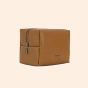 Introducing Matt & Nat's small Blair toiletry case with a top zipper closure and a handle on the right side in a warm brown shade. Get organized at home or for travel with this adorable toiletry case.