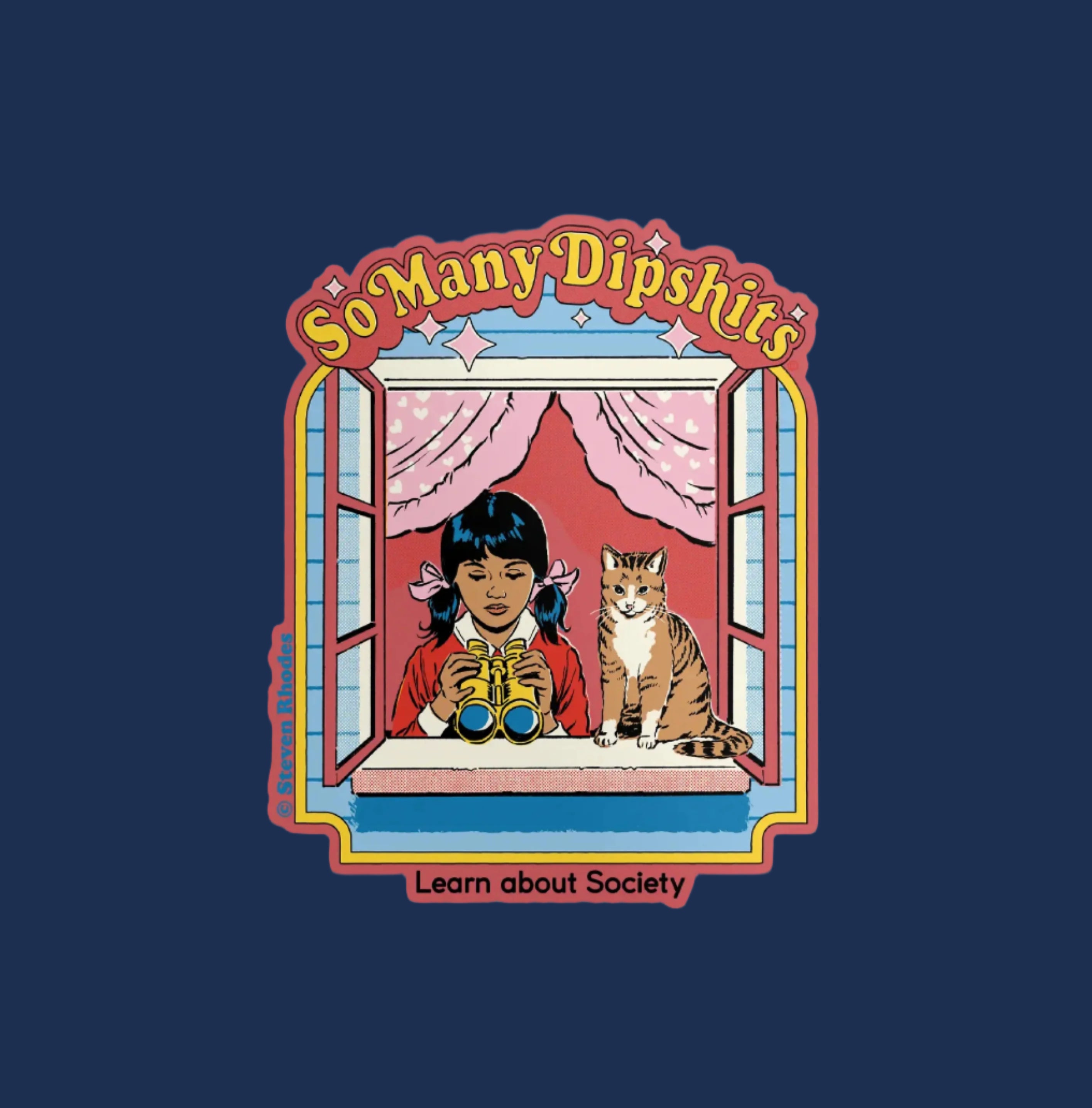 Add a splash of humor to your gear with the So Many Dipshits Sticker by Steven Rhodes. Perfect for laptops, water bottles, or anywhere you want to share a cheeky smile. Durable and eye-catching, it’s a fun way to express your playful side.