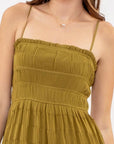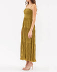 Solid Tiered Pleated Midi Dress | Olive