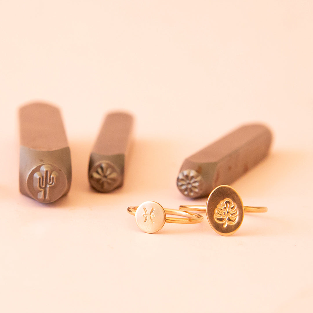 Join local artisan Sangeeta Nair, of Ember & Onyx, as we learn to create a hand stamped ring. Within this workshop, you can expect how to learn to create a 14k gold filled ring using various jewelry making tools and microtorch basics. Make a personal statement with a variety of stamps from initials, zodiac signs, various flower designs, stars, cactus, monstera leaf & more for your ring! No prior experience necessary, just bring your crafty selves!