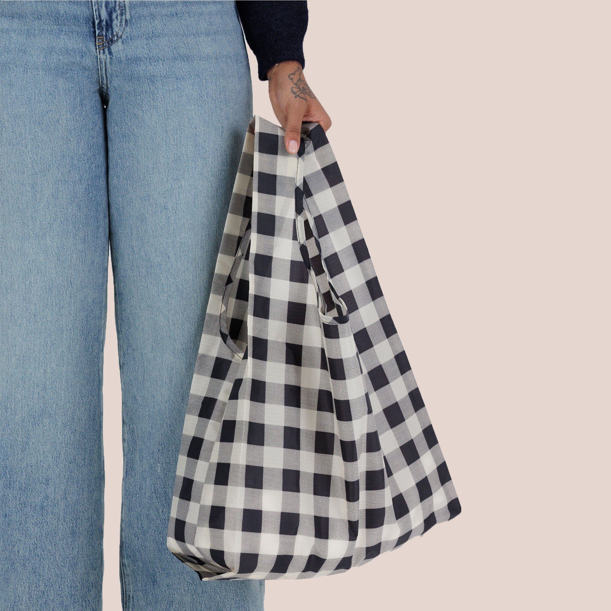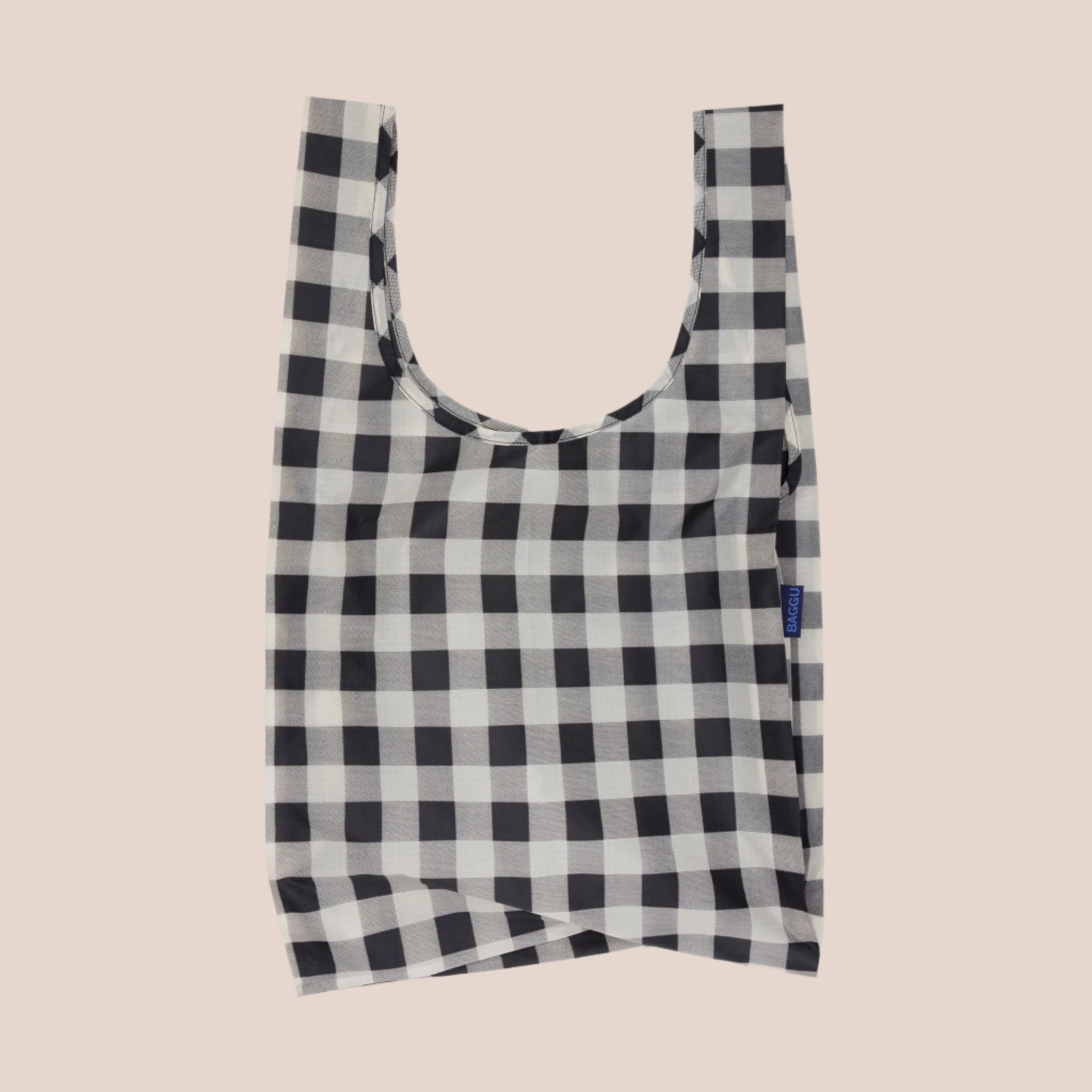 Baggu's best selling reusable bag in B&W Big Check isn't just for the grocery store, it's for everywhere and hauls almost anything.
