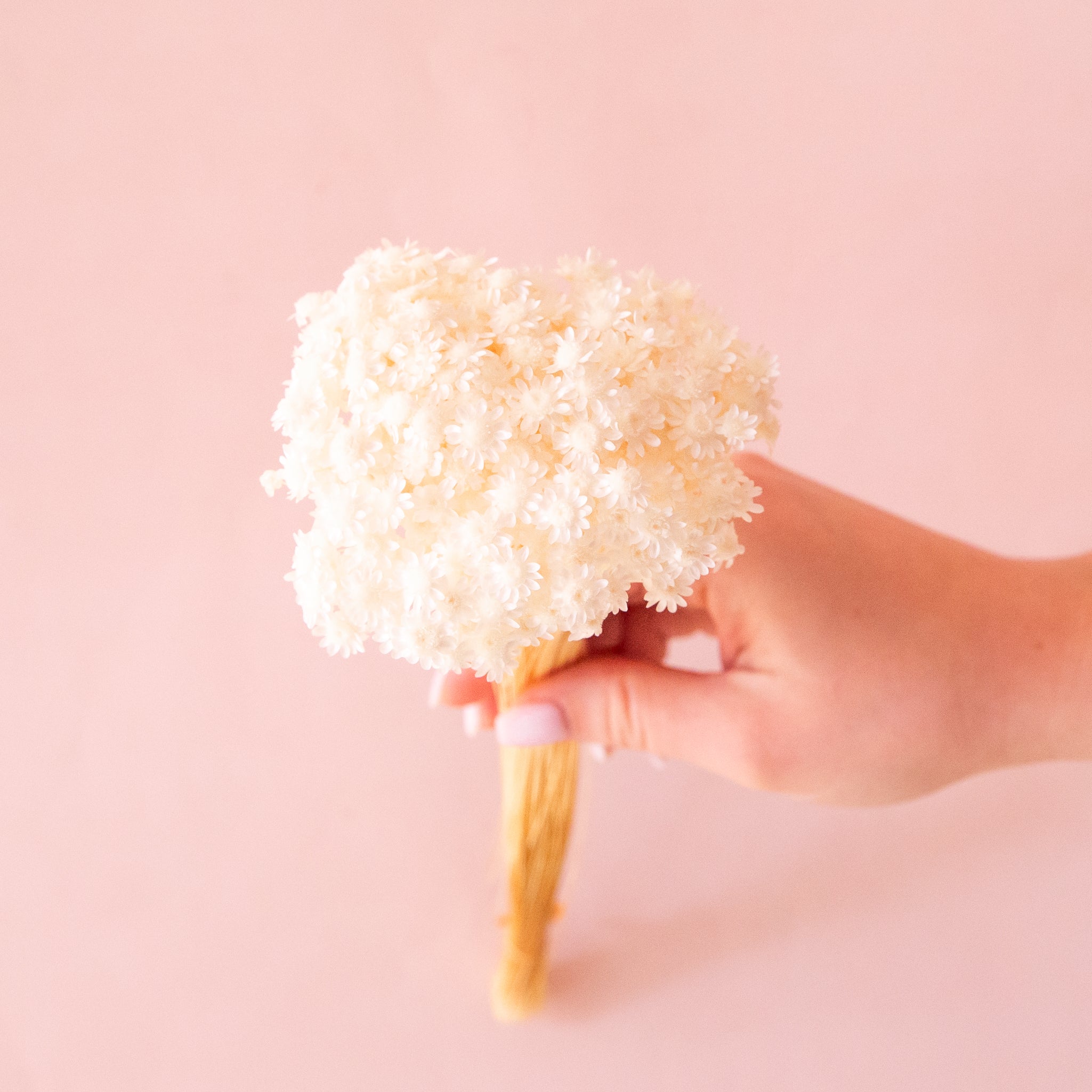 Add a delicate touch to your home decor with our Star Flower Mini in White. These tiny, dried star flowers are perfect for adding a subtle charm to any room. A must-have for any flower arrangement enthusiast!
