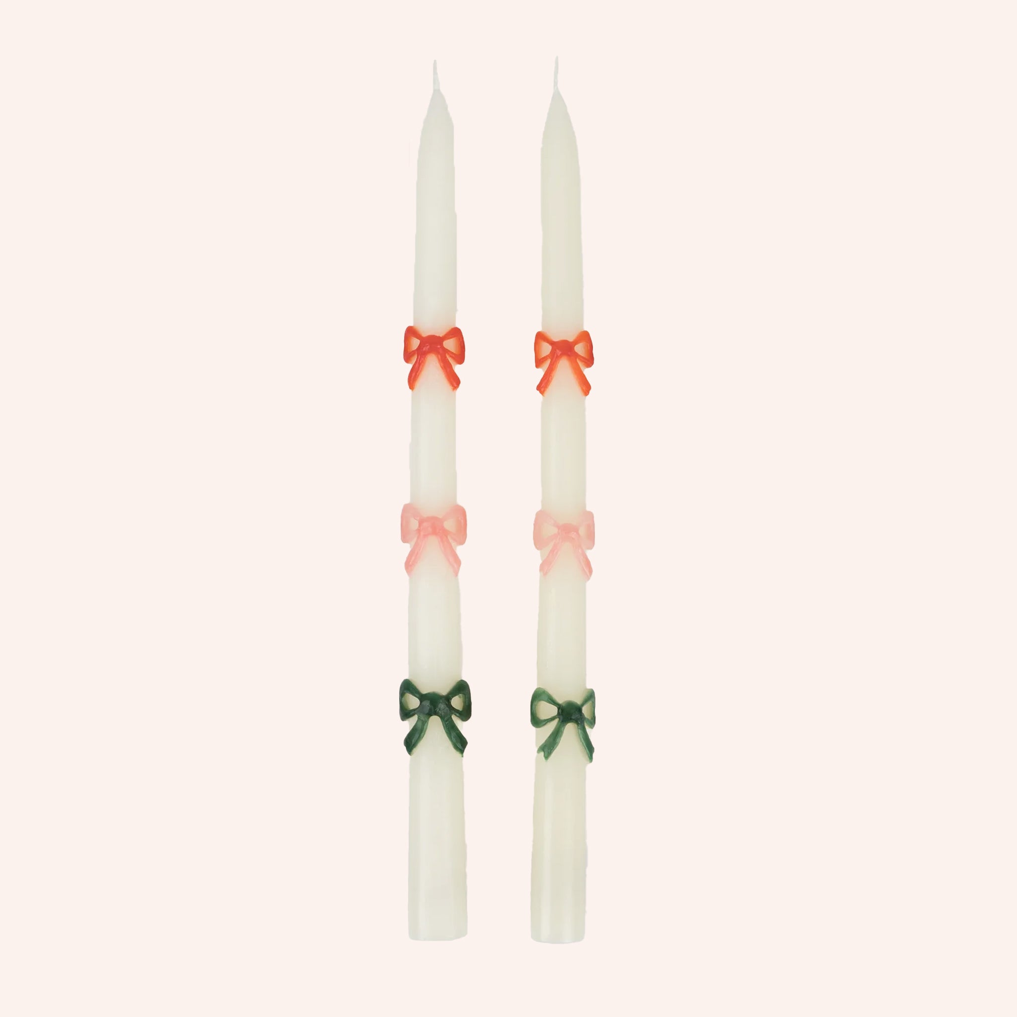 Whether you're decorating for the holidays or hosting a girly dinner party, the multi colored bow taper candles are a must-have for any host! This wonderful set makes a great gift for someone who loves creating tablescapes and hosting. If you don't light them, they can be displayed year after year – perfect on the mantel, in a window or on the party table.