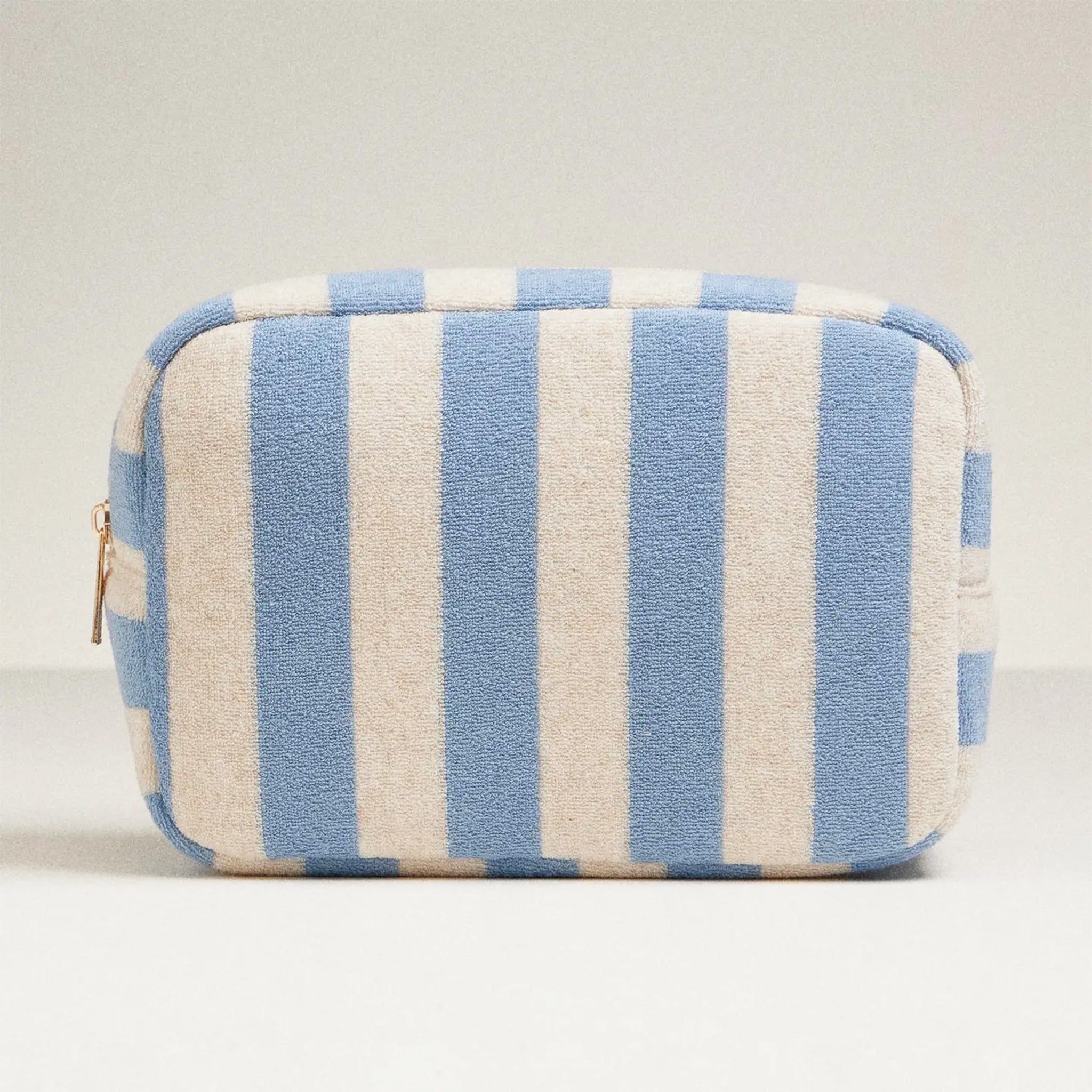 Keep your essentials tidy and trendy with this playful terry striped pouch! Featuring a natural base color brightened by lively stripes, it’s perfect for summer adventures or everyday organization. Lightweight and roomy, it’s your go-to companion for a splash of fun and function wherever you go.