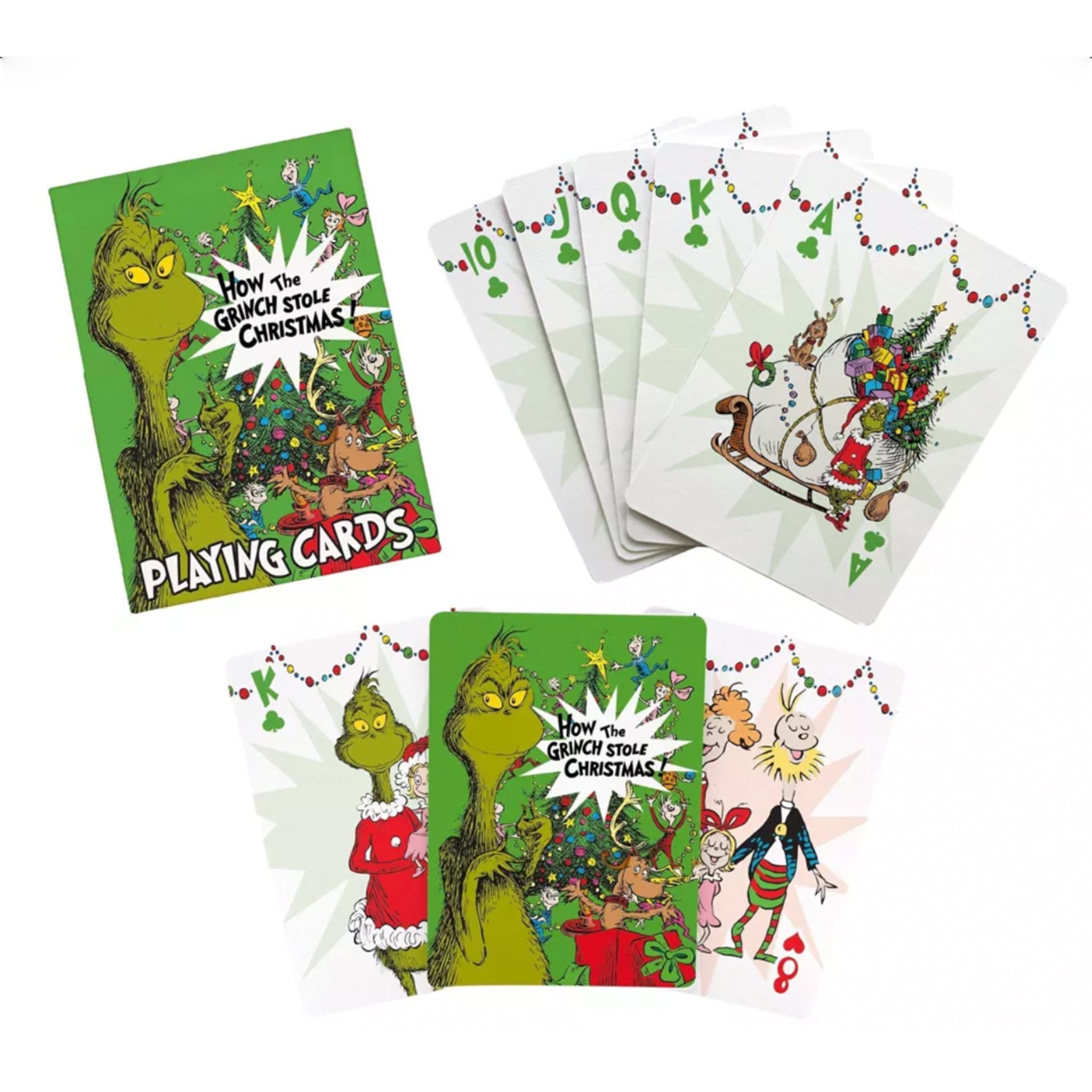Deck the holidays with the adorable Grinch Playing Cards! Perfect for the festive season or giving as a thoughtful stocking stuffer, this deck is sure to bring laughter and joy to your home this season!