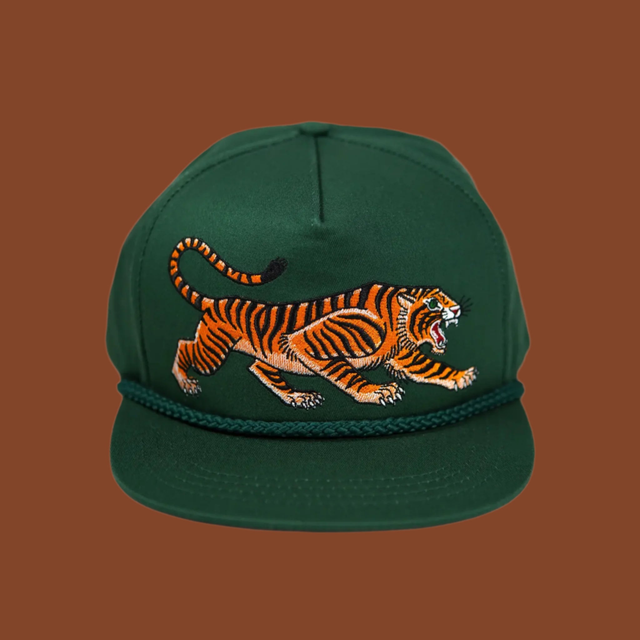 The traditional tattoo-style tiger was drawn by Wes Pratt of The Duchess Tattoo in Parkdale, Toronto. Stuntin Good's poplin cotton ball hat features tone-on-tone rope across the brim and a structured front. The snapback closure offers a perfect fit, with a Stuntin woven tag on the sweatband.