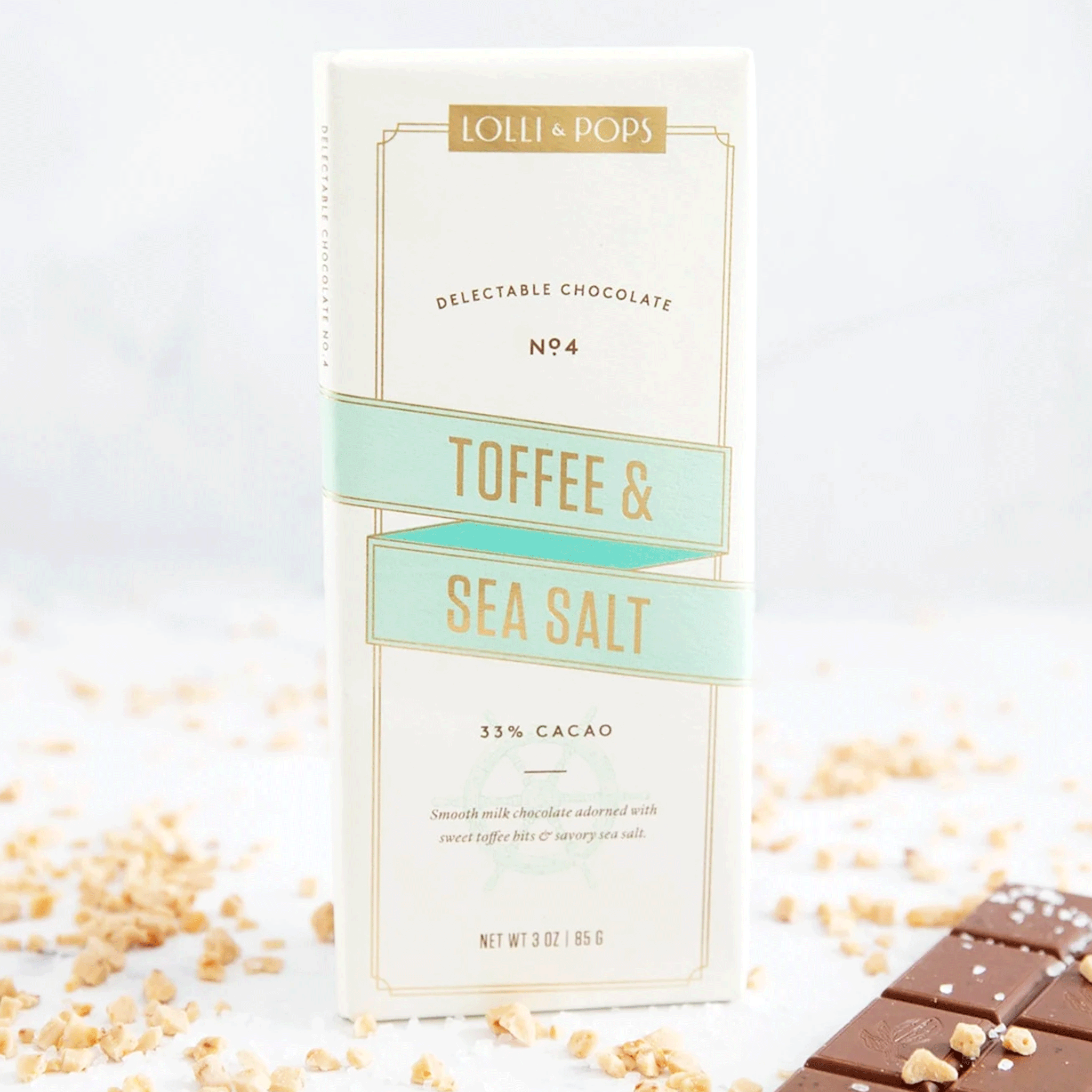 Indulge in a sweet treat with our Toffee & Sea Salt Signature Bar. This smooth milk chocolate is adorned with sweet toffee bits and savory sea salt, making it the perfect sweet for treating yourself!