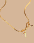 Get ready to add some charm to your outfit with Unwrap! This 16"-18" herringbone necklace features a bow design and is plated with 18K gold on stainless steel. Perfect for adding a touch of playfulness to any look or gifting to a jewelry lover!