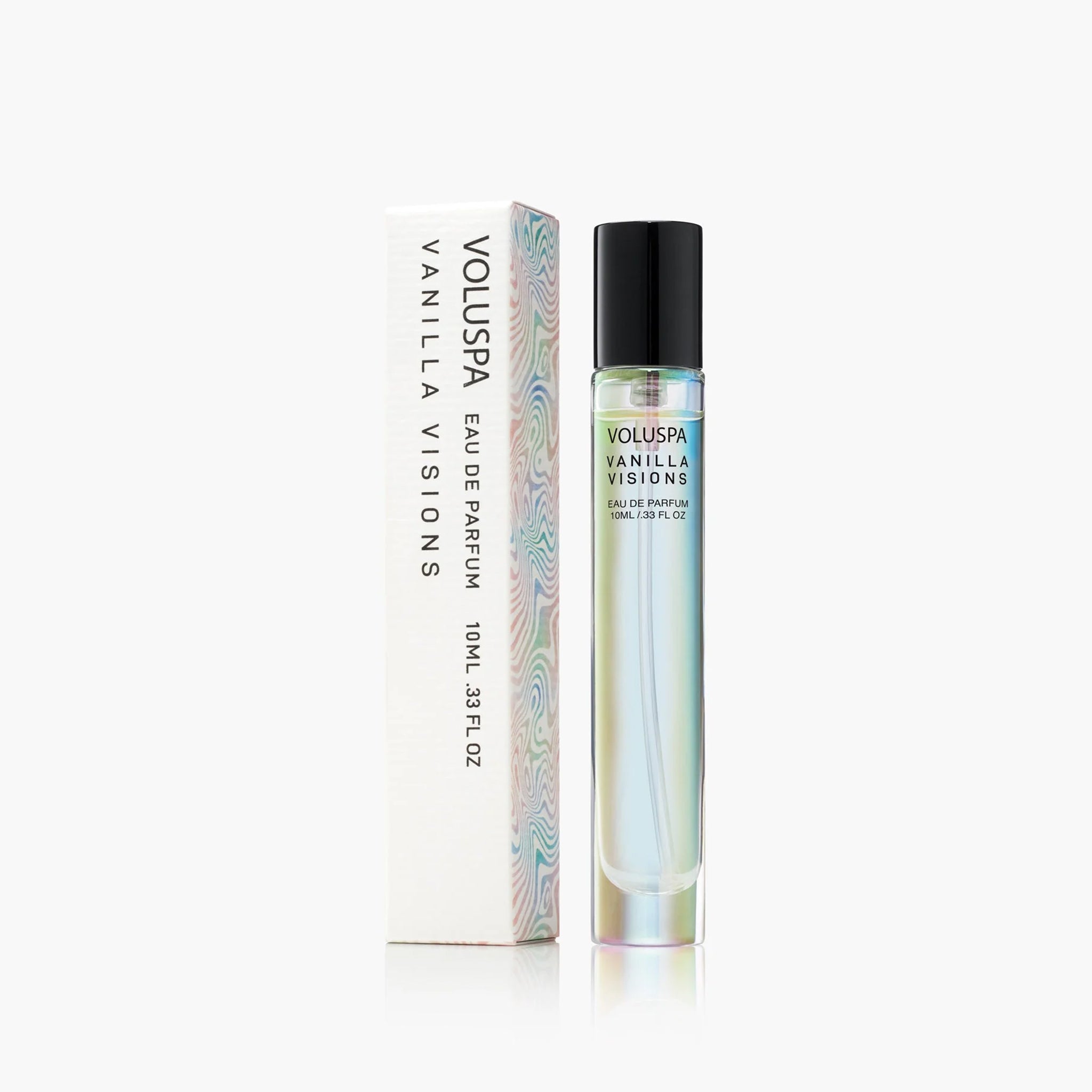 Meet Voluspa's Vanilla Visions Eau De Parfum. An addiction you don't have to break. Pulses of Almond & Amber flow downstream a sugared Vanilla river, meeting the mossy bank with rum-soaked sandalwood. Give your skin a dose of Vanilla Euphoria and let serotonin soar.