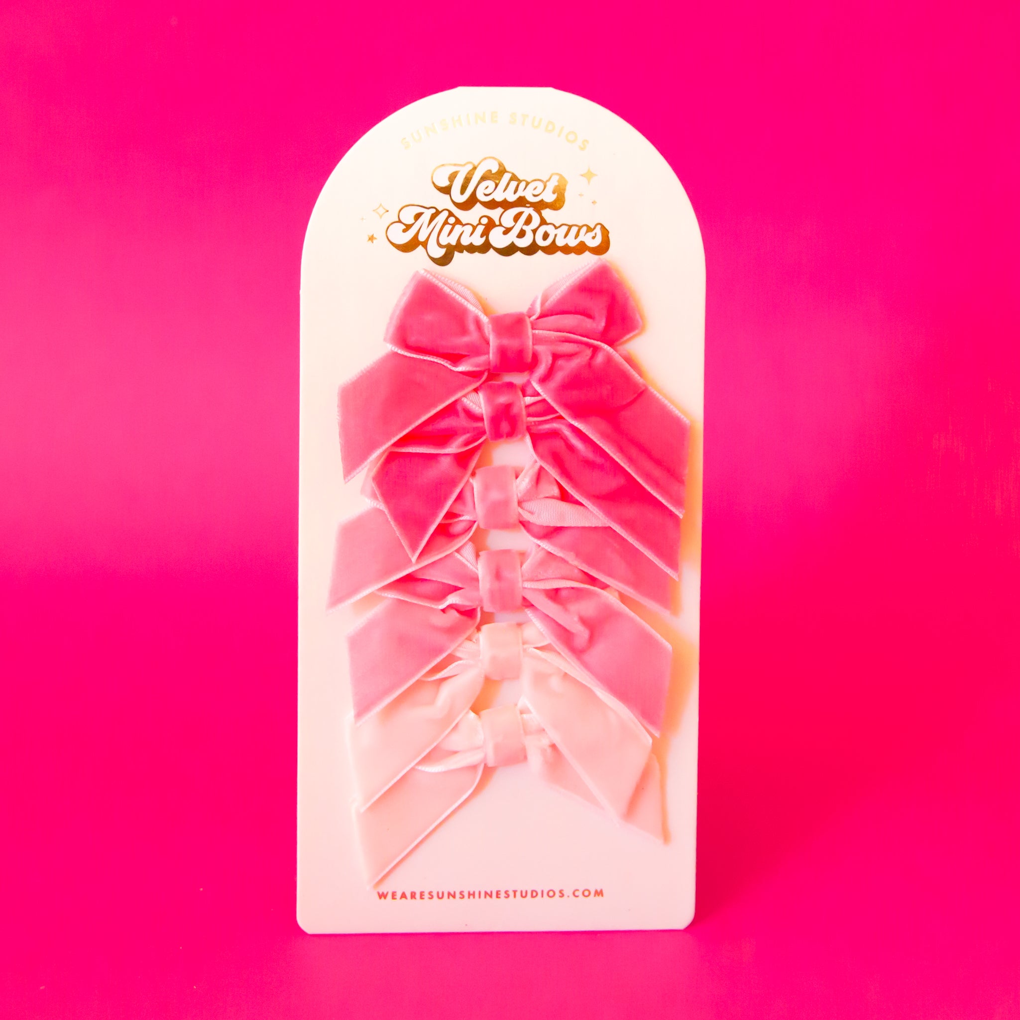 Add the perfect pop of color with our Velvet Mini Bows in the shade Pink. Featuring six bows in three different shades, you'll have endless options to attach these to. Bows made easy, these adorable gift wrap accessories have a wire backing that allow you to secure to anything that needs a little dash of holiday spirit! Think, garlands, wreaths, gifts and more!