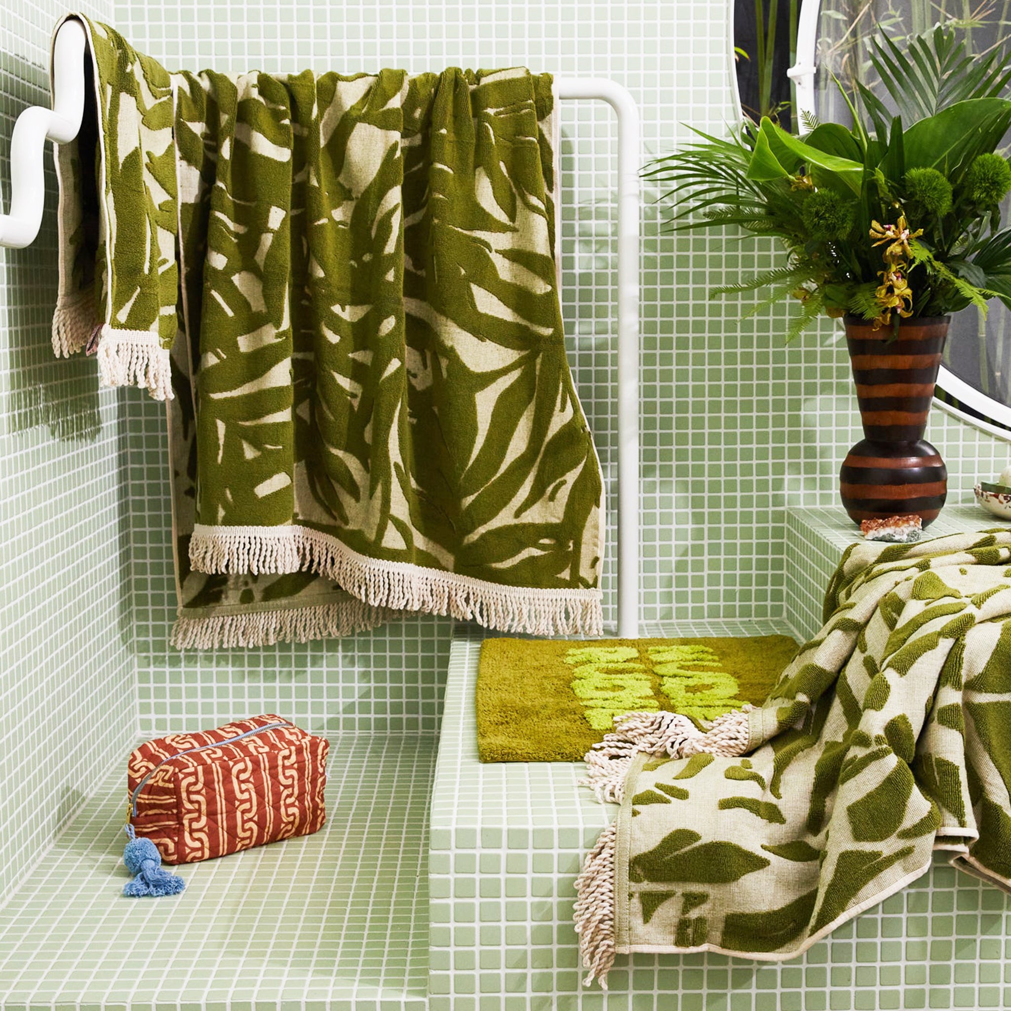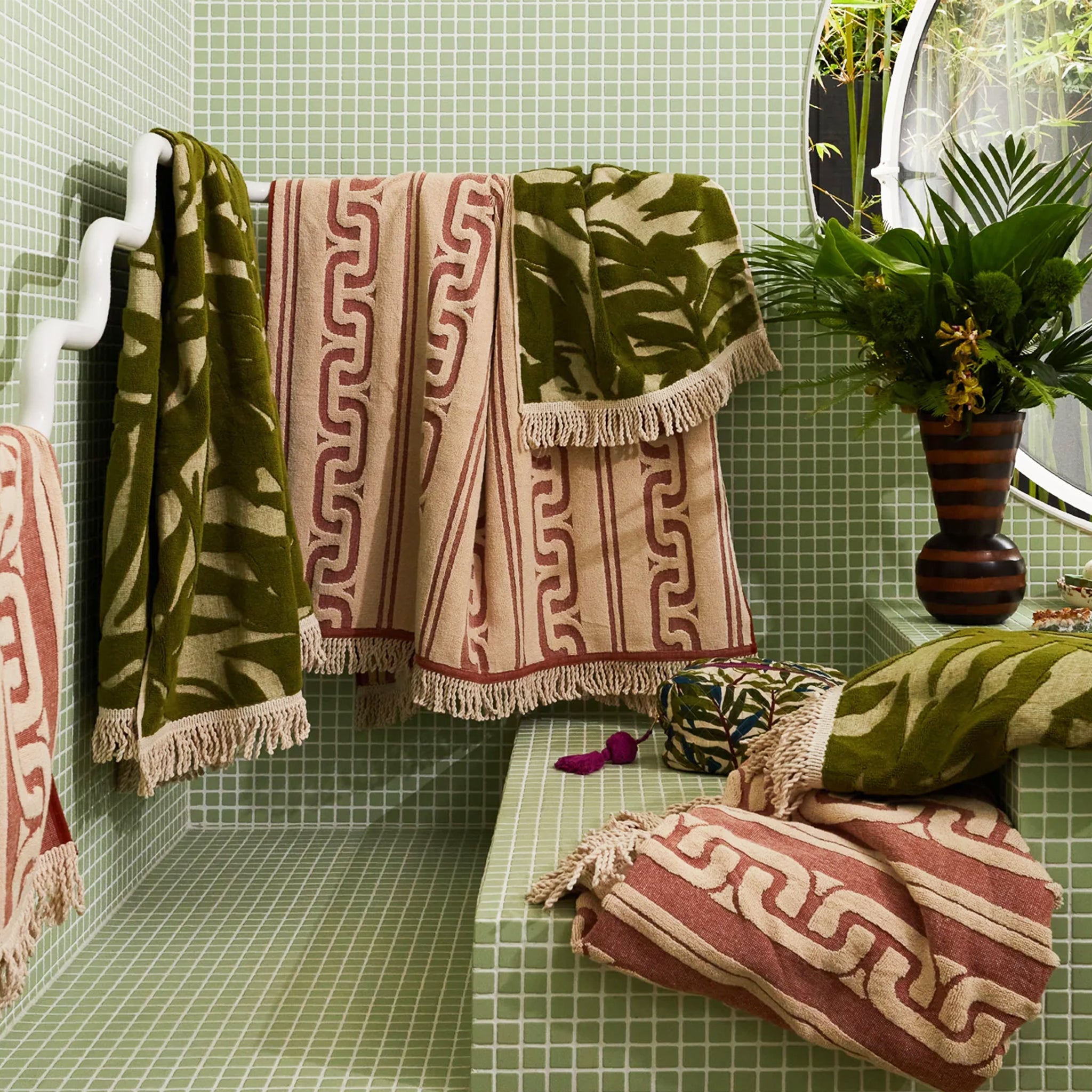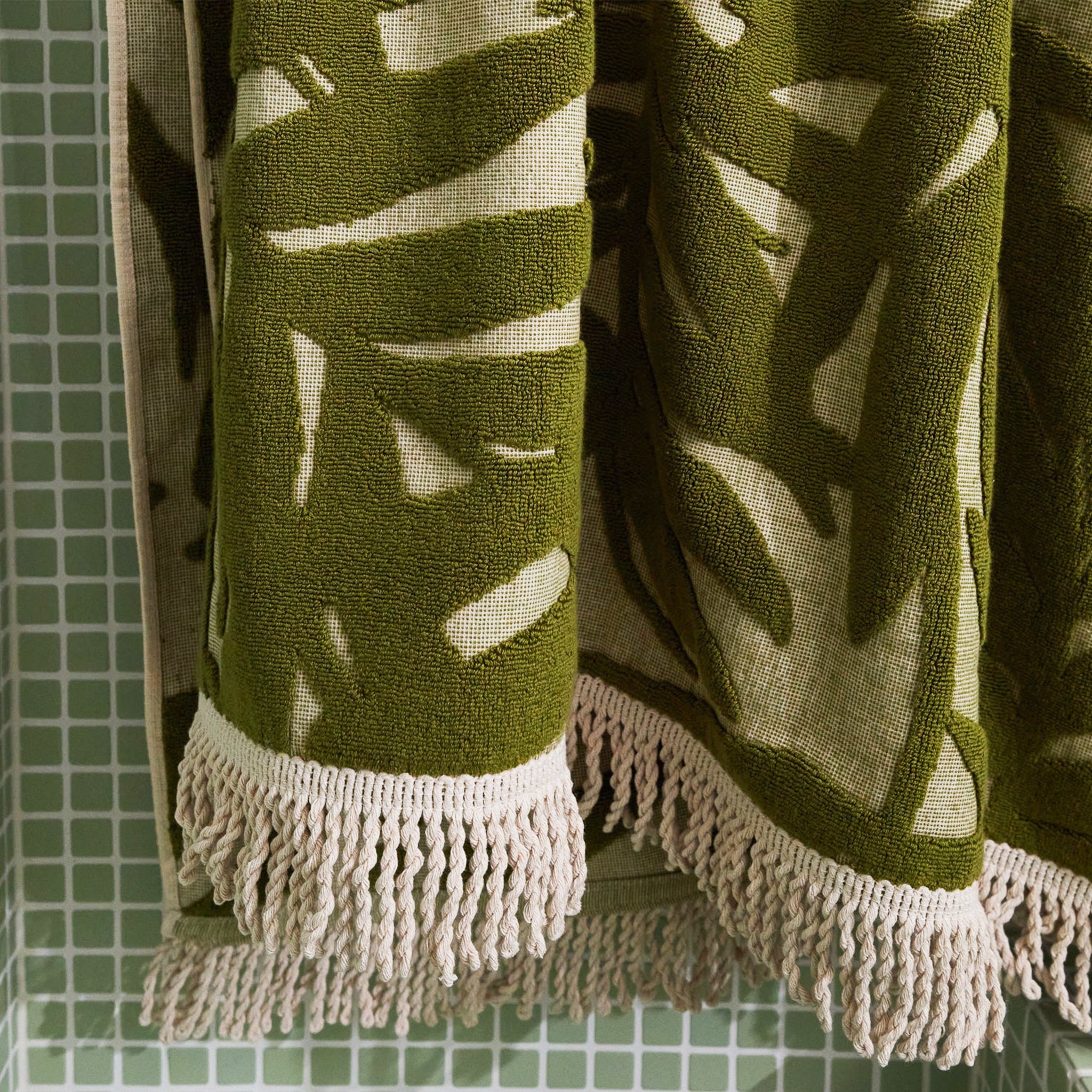 “A bamboo motif takes centre stage in our Verita towel range, infusing a burst of energy and serenity into your bathing ritual. Its fringed edges and leafy print further enhance its refreshing and relaxed day-spa vibe. – Phoebe’s Style Notes