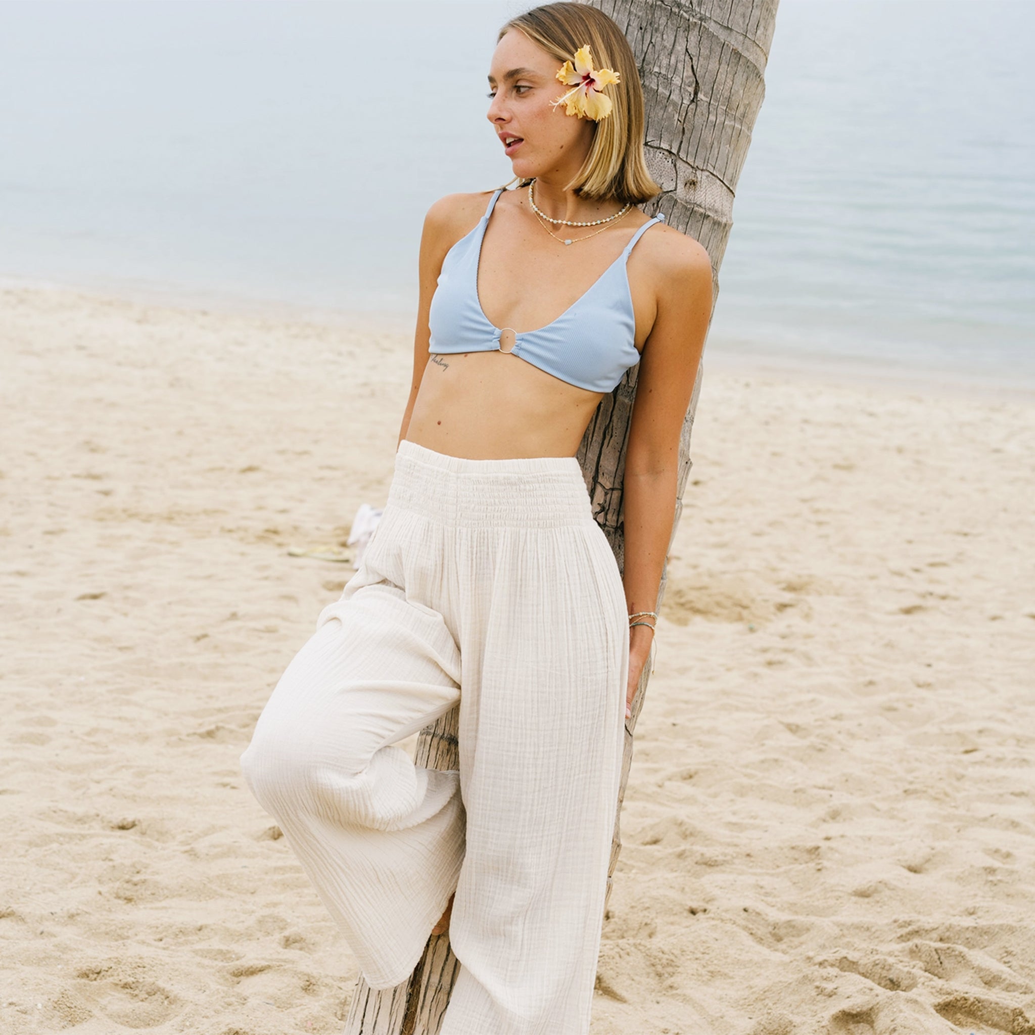 Welcome the warmer weather with these essential wide leg cotton pants! Handcrafted with 100% cotton and designed for comfort, these easy-to-wear, lightweight pants are perfect for enjoying all that spring has to offer, from relaxing at home to taking a stroll in the sand.