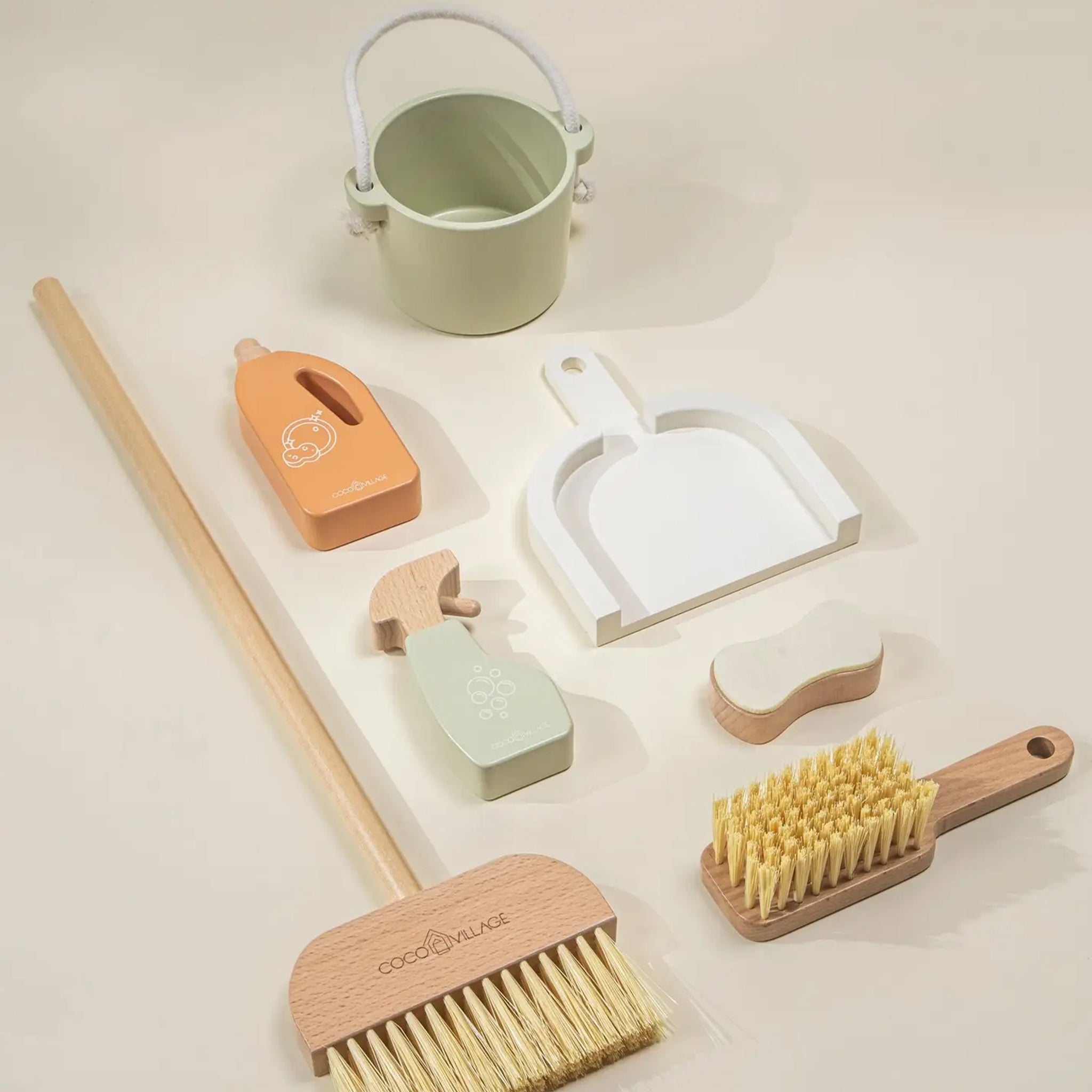 Spark your child’s imagination with the Wooden Cleaning Playset! Made from safe, high-quality wood, this set includes realistic tools perfectly sized for little hands. Kids can pretend to tidy up just like grown-ups, building independence, responsibility, and coordination while having a blast. Whether cleaning their playroom or joining you in chores, this playset turns everyday tasks into playful adventures.