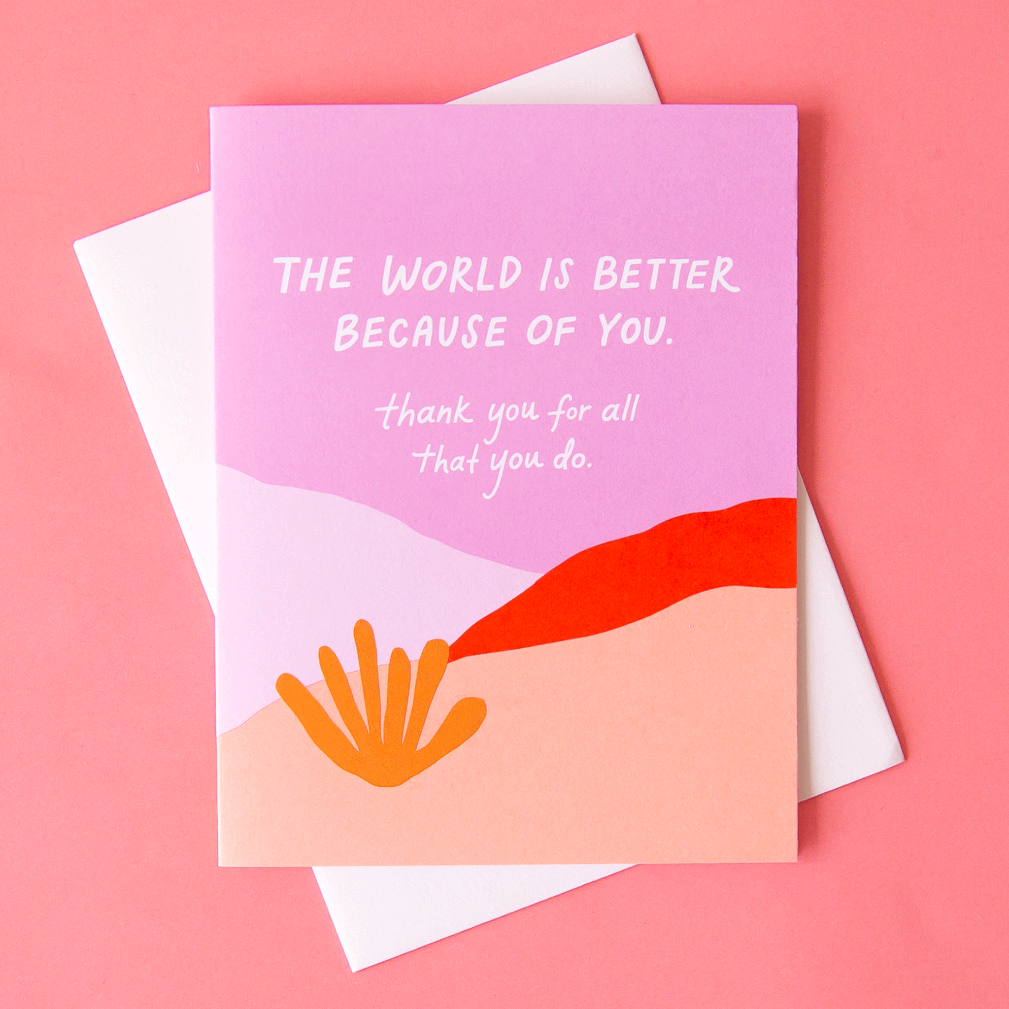 This World is Better Card is a sweet way to express your gratitude! Remind someone who has made the world a better place just how special they are with this stunningly-colored card that reminds us all why it's so much brighter with them in it.