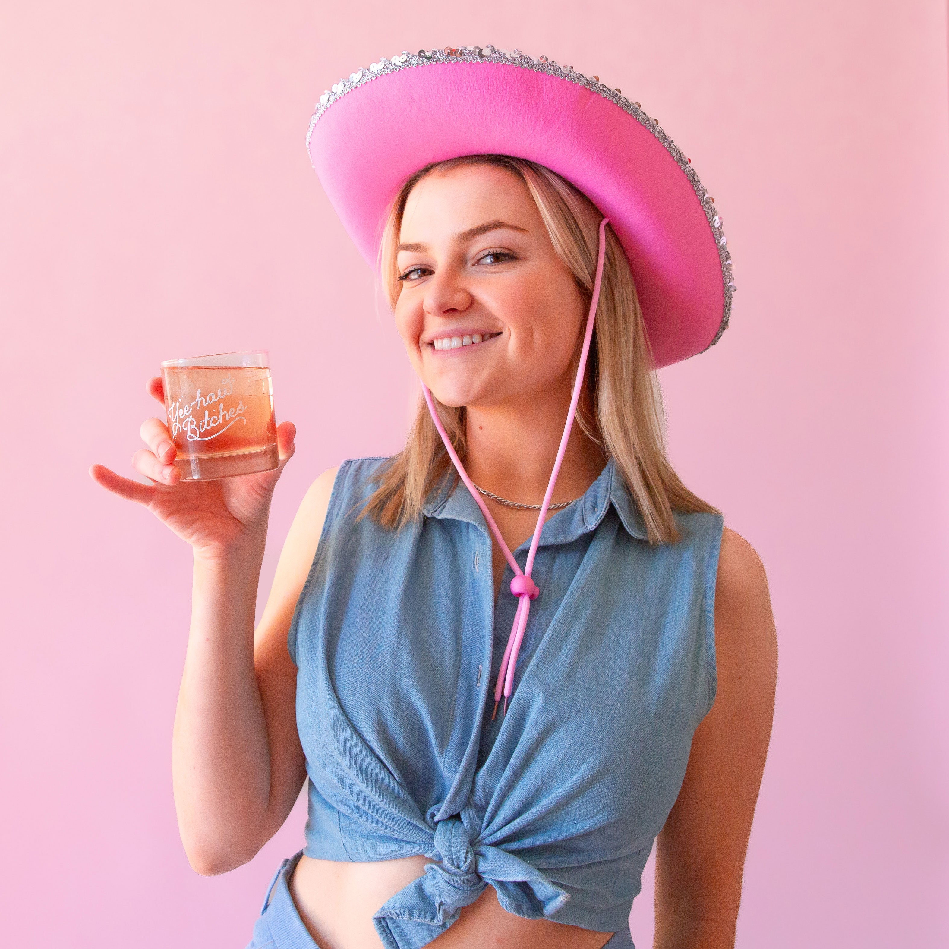 Never let cowgirl summer end with our new Yee-Haw Bitches Glass Tumbler, a cowgirl classic! Featuring a clear glass cup screen printed with, "Yee-Haw Bitches", your favorite beverage just got even better!